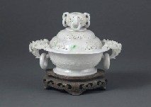 - Jade incense burner with design of flower and lugs
