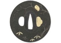 - Juyo-kodogu Tachi style itomaki sword mounting with scabbard with design of crest in maki-e lacquer