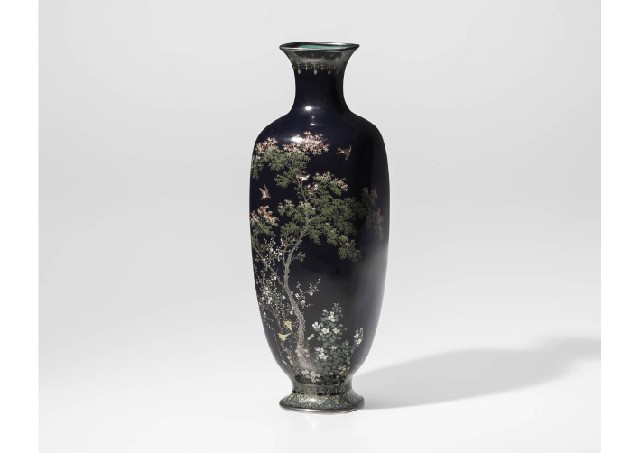 [Lot0402] Vase with design of flower and bird in cloisonne