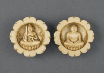 - Shibayama style inlaid small folding screen with design of Six poetry immortals