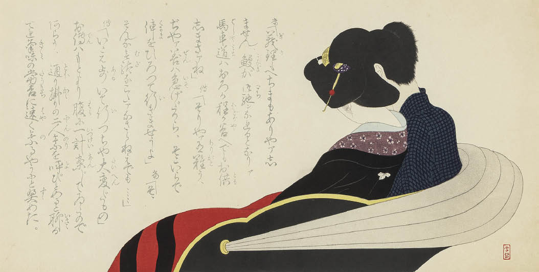 woodcut, sheet size 27.2x52.2cm, sealed, framed.