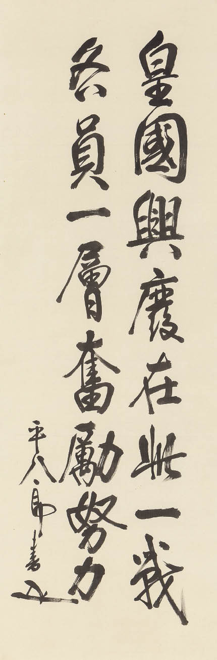 ink on paper, 130x43cm, signed, mounted for scroll, with a wooden box signed by OGASAWARA Naganari.