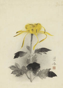 ink and color on paper, 40.8x29cm, signed and sealed, mounted for scroll, with a wooden box signed by the artist.