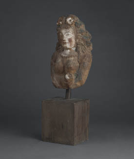 1965, color on wood carving, H70xW26x20cm (including pedestal), incised with signature on the back, with a box.