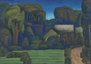 ink and color on paper, 42.2x59.7cm, signed and sealed, with a sticker signed and titled by the artist, framed.