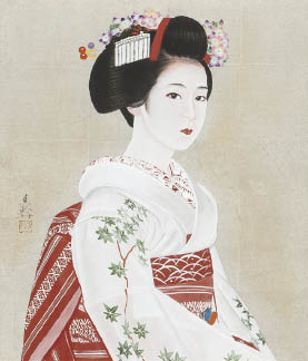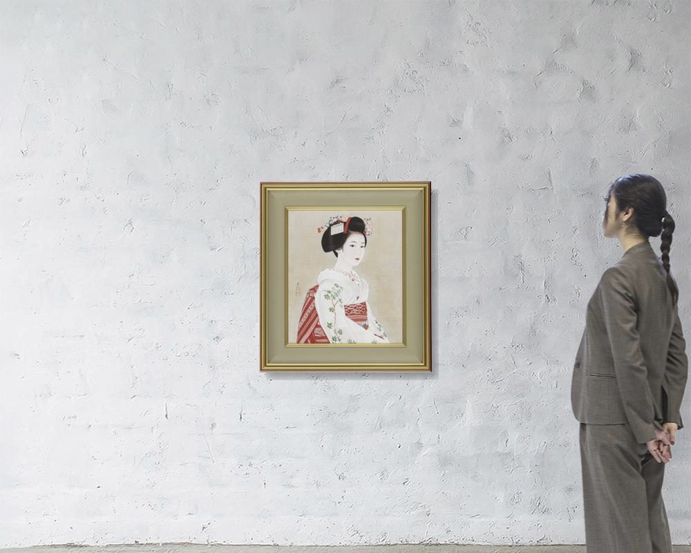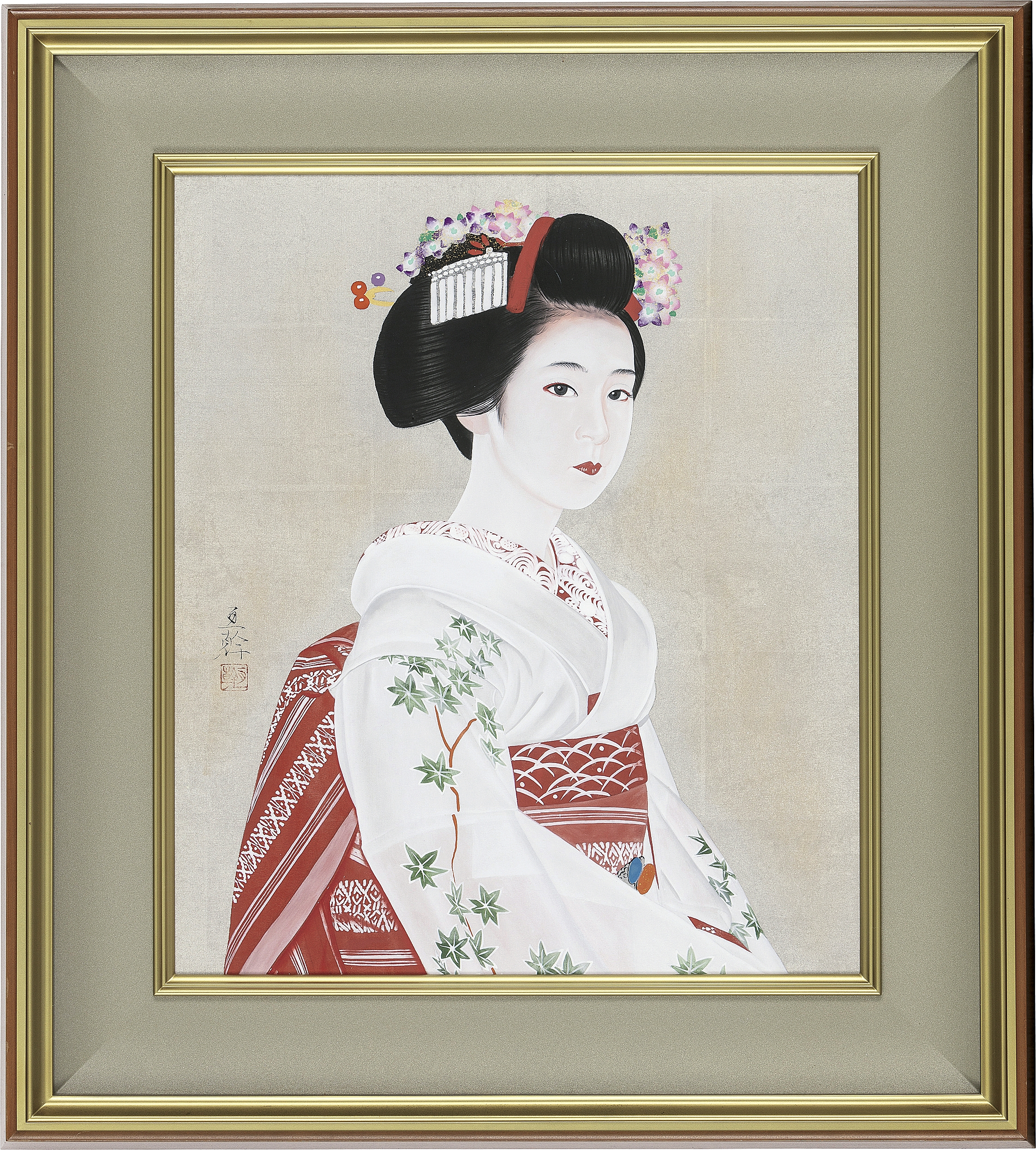 ink and color on silk, 10 Japanese painting type size (H53cm), signed and sealed, with a sticker signed and titled by the artist, framed.