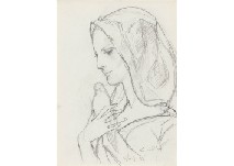 pencil on paper, paper size 32.2x25cm, with a blind stamp "SUCCESSION KIMIYO FOUJITA", framed.