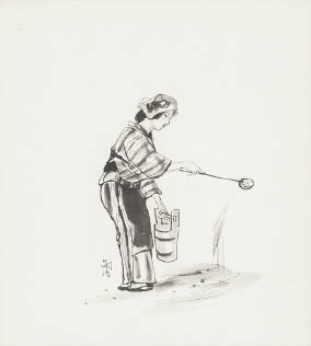ink on paper board, paper board size 27x24cm, signed, framed.