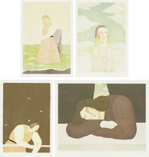 a portfolio of 4 lithographs, Shinchosha Print 65-68, 1983, 32.7x42.4-54x35.8cm, all signed, dated (1982), ed.117, sheet size each size 68.5x50.5cm (with full margins), printed ed. from 117 regular copies out of the total edition of 139 on the justification page, published by Yayoi Gallery, with an original case.