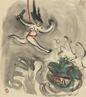 ink and gouache on paper, paper size 27.3x24.2cm, sealed, with a drawing in ink on verso, framed.