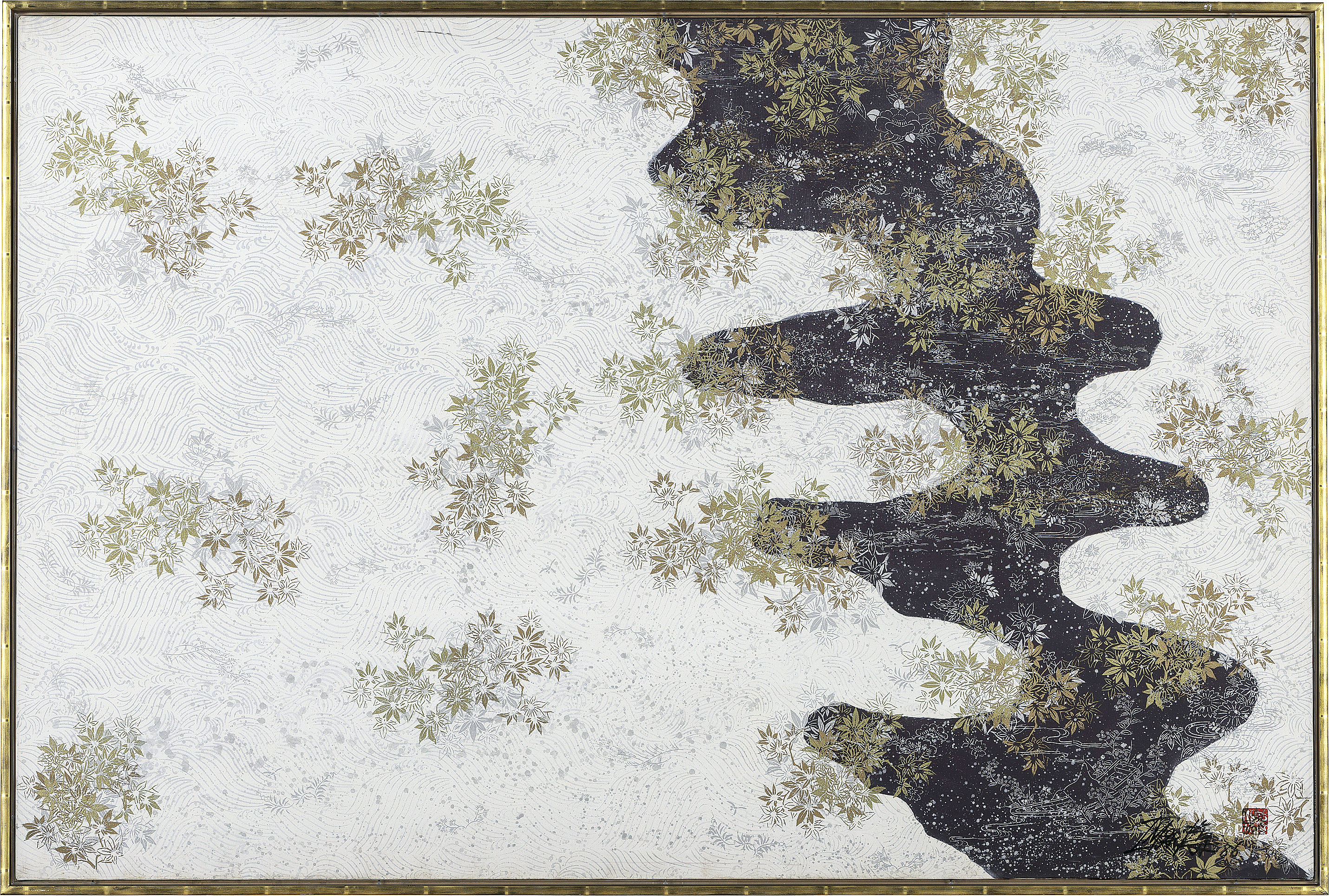 1986, mixed media on canvas, 130.3x194cm, signed and sealed, also signed, titled and dated on verso, with a sticker of "Imai" (Musée d'art contemporain de Dunkerque, 1990-1991), framed.* *Not examined out of frame.