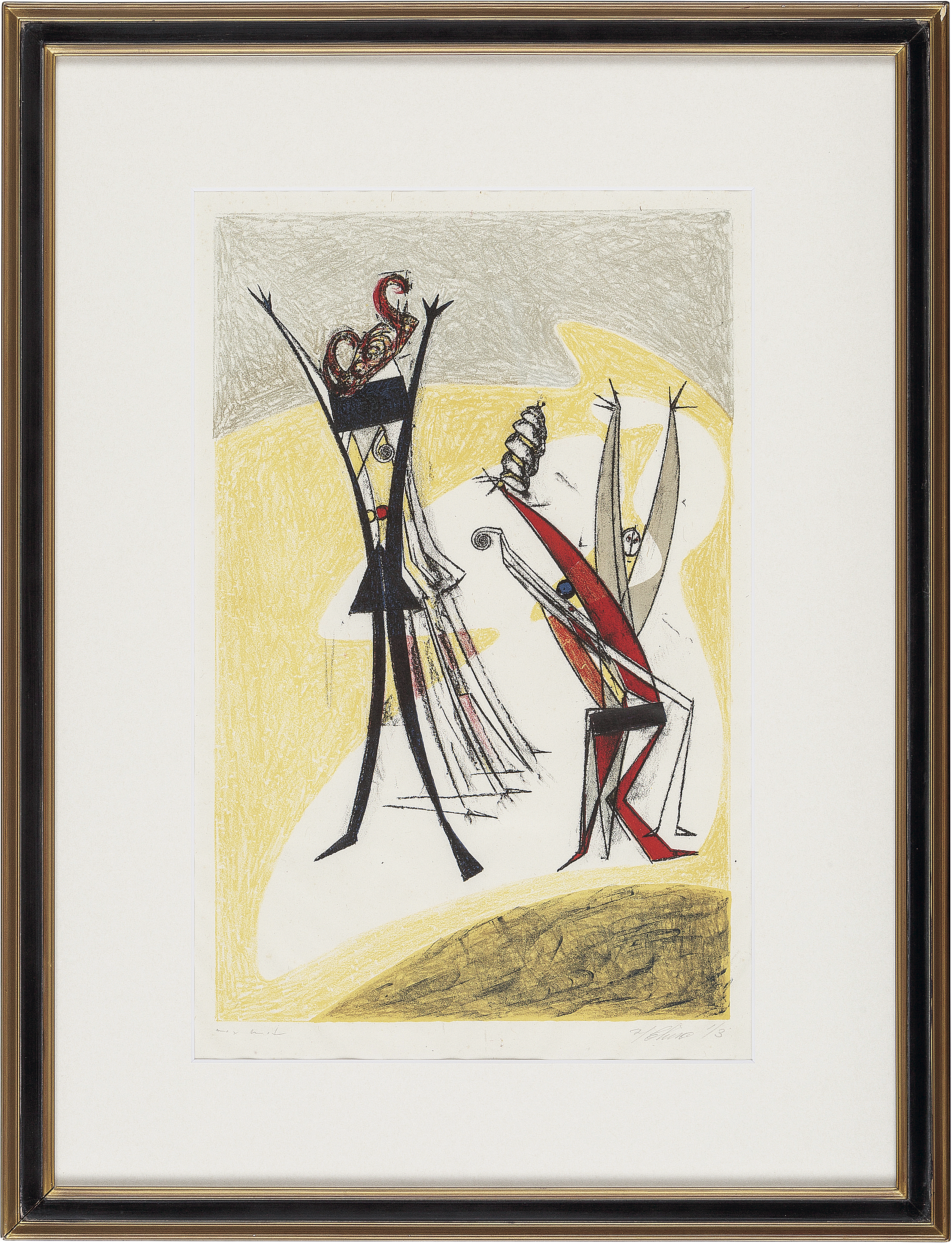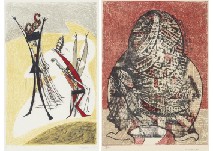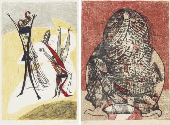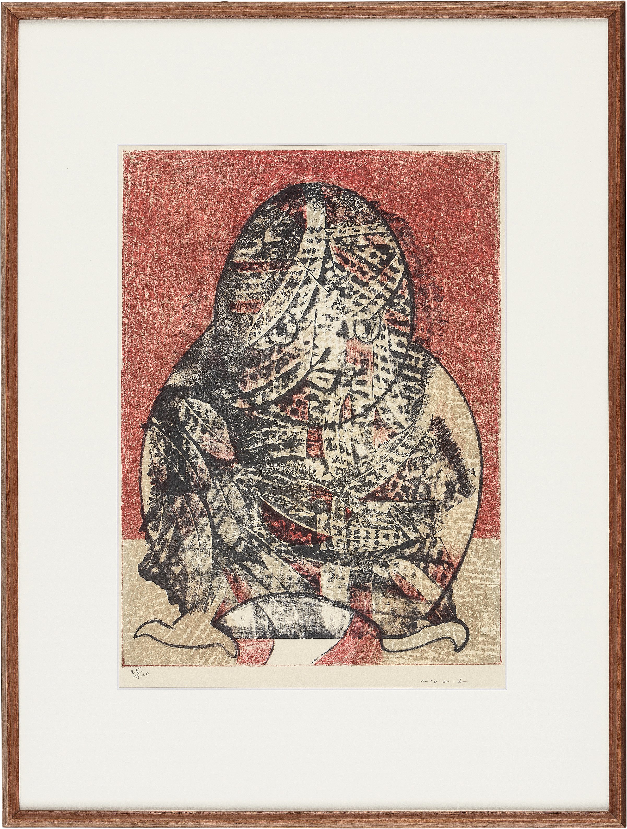 this lot accompanies another work; 【Horned owl】(lithograph, 48.7x36cm, signed, ed.220), both are framed.Condition : pale toning and minor undulations to the sheet, some stains on the illustration, scattered stains and 1 hole to the margins and on verso, 1 tear to the edges on verso; 【Horned owl】: toning and some creases to the sheet, traces of tapes to the edge on verso.