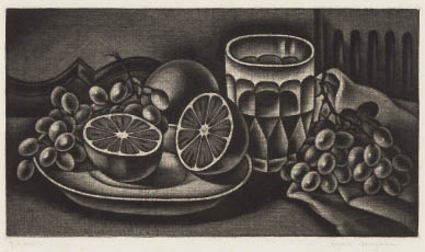 Reifushobo No.228, 1932, maniere noire, 16.3x29.3cm, signed, ed.EA, sheet size 31.2x42.7cm, with a dedication in the margin, with a blind stamp "KIYOSHI HASEGAWA", framed.