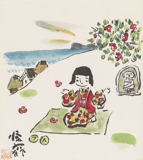watercolor on paper board, paper board size 27.2x24.2cm, signed and sealed, framed.