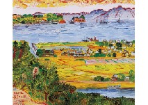 glass painting, frame window size 11.8x18.2cm, signed, framed.* *Not examined out of frame.
