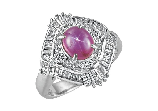 [Lot0459] Pink Star Sapphire Diamond Ring