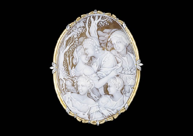 inscription: 18K, signed "MARIANO ACHITO " on Cameo, gross weight: 73.8g,