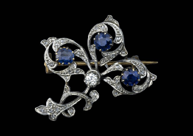 - Blue Sapphire Diamond Brooch