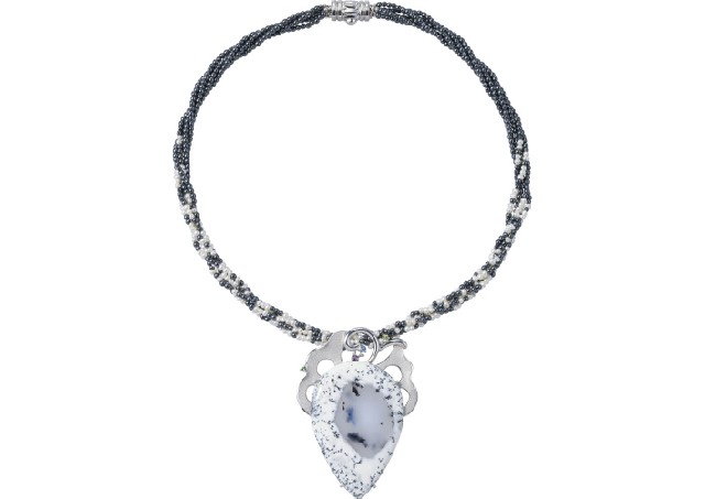 - Opal Agate Hematite Freshwater Pearl Multi-gem Pendant