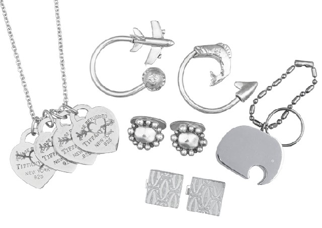 - 1 TIFFANY & CO. Pendant: RETURN TO TIFFANY (inscription: AG925, 925), 2 TIFFANY & CO. Key Rings (1 inscription: 925, 1 inscription: STERLING, 925), GEORG JENSEN Cuff (inscription: 925S), 1 GEORG JENSEN Key Holder, 1 CARTIER Cuff (inscription: 925),