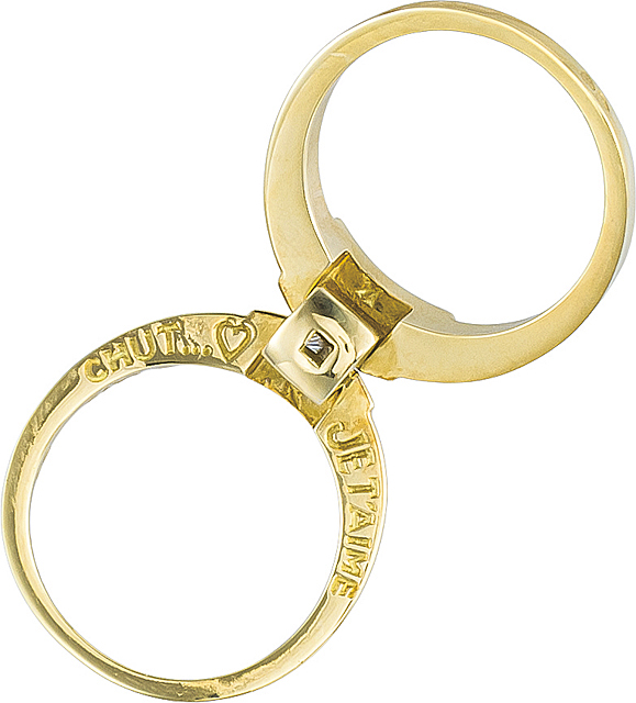 - ring size: 12.5, inscription: 750, hallmark (AIGLE, France), 0.15, A.Roure, CHUT..JE T 'AIME, 53, gross weight: 10.3g.