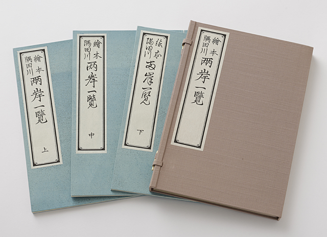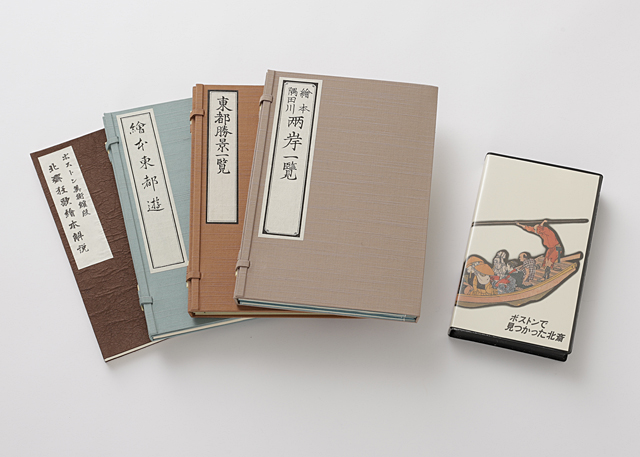 - 1987年に株式会社東京放送主催で開催された「ボストンで見つかった北斎展」開催を記念して、ボストン美術館が所有する葛飾北斎の版木で摺った限定版。全ての復刻木版はアダチ版画研究所により原版に忠実に再現され、和綴じ本の装丁がされている。絵本は「隅田川両岸一覧(3冊1組)」「東都勝景一覧(2冊1組)」「東都游」はそれぞれタトウケースに入り、3種の絵本が1つの桐箱に入り、さらに解説本とVHSテープが付随してオリジナルケースに収納される。また、「北斎模様画譜」も和綴本、タトウケース、桐箱が別立てで付く。