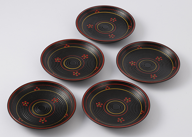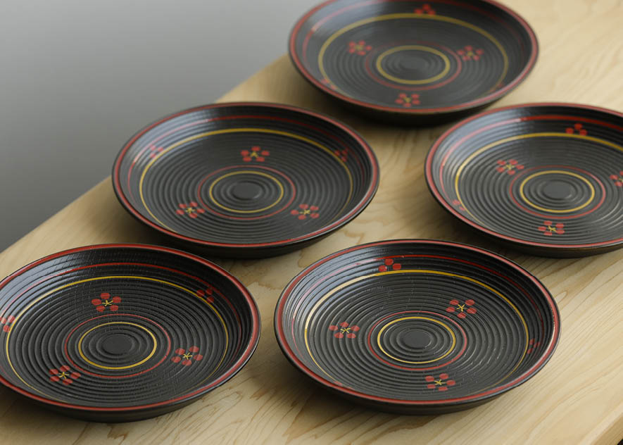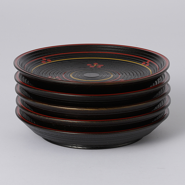 【Lot0208】 梅鉢絵銘々盆 五人前