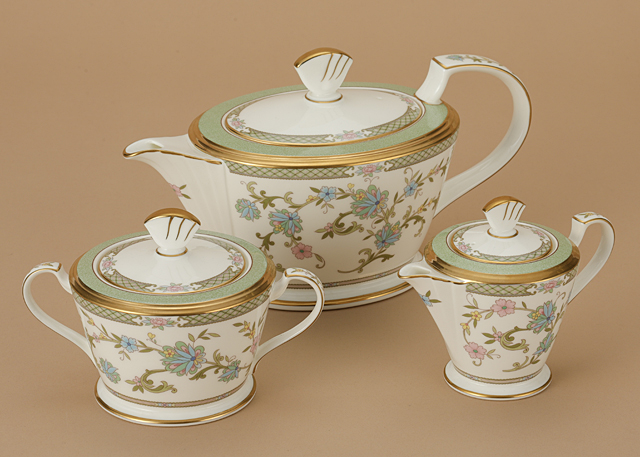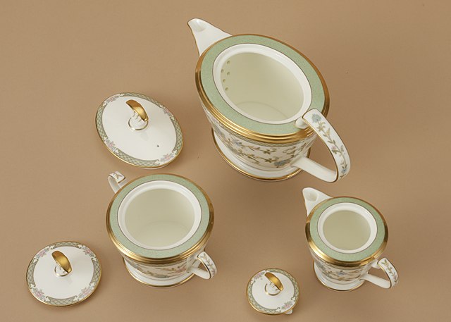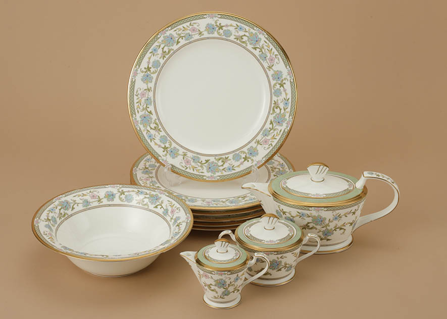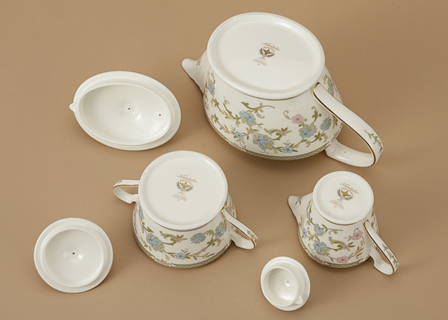 ■サイズ:プレート(6点)/H2×D27.4(各)cm、スープボウル/H7×D24.5cm、ポット/H13.4×W24.6×12.4cm、シュガーポット/H10.8×W15.3×10.4cm、クリーマー/H9.9×W13×7.7cm