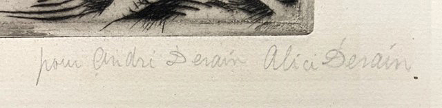 ■備考:(作品)マージン右下に"pour Andre Derain Alice Derain"の記述 マージン下部に ARCHES のウォーターマーク シート全体にヤケ、所々にシミ 裏面縁沿い上部2ヶ所に紙テープ貼付