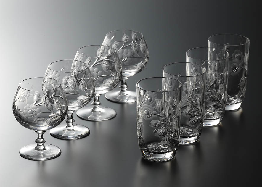 ■備考:(作品)ワイングラス4点、タンブラー4点の計8点セット ワイングラス1点の脚部にチップ タンブラー1点の口縁部にクリベージ
