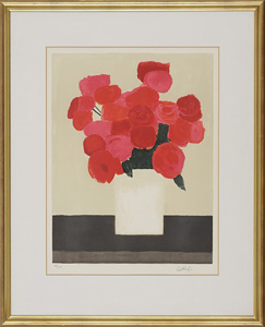 【Lot0200】 黒いテーブルの上の赤いバラの花束
