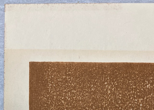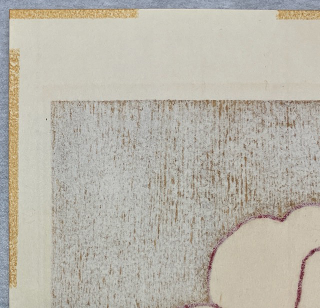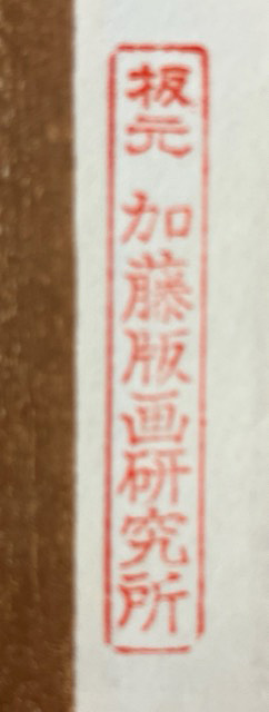 ■備考:(作品)加藤版画研究所版 マージン左下に"クマガイモリカズ"の記述 シート全体にヤケ 裏面縁沿い14ヶ所にセロハンテープ跡