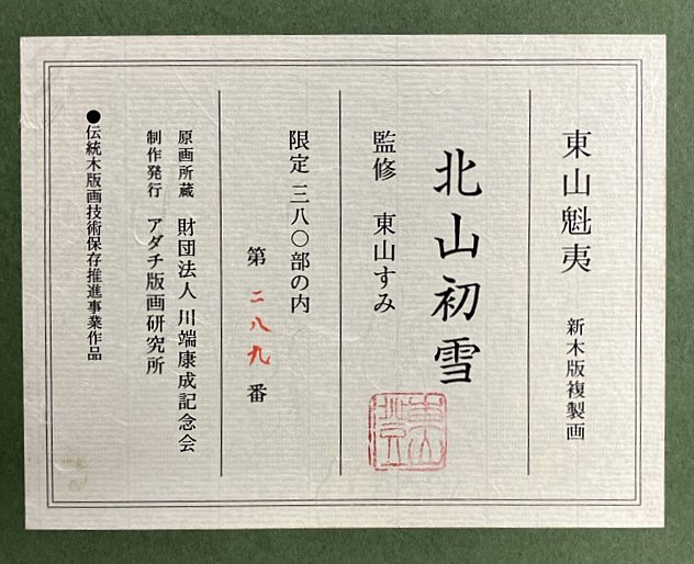 ■備考:(作品)「東山すみ」監修シール アダチ版画研究所版 版面及びマージンに薄いヤケ