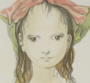■作品名:パリの屋根の前の少女と猫(エスタンプ)