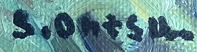 ■備考:(作品)キャンバス裏にもサイン、タイトル 画面に薄いヤケ、数ケ所にごくわずかな絵具の縮み