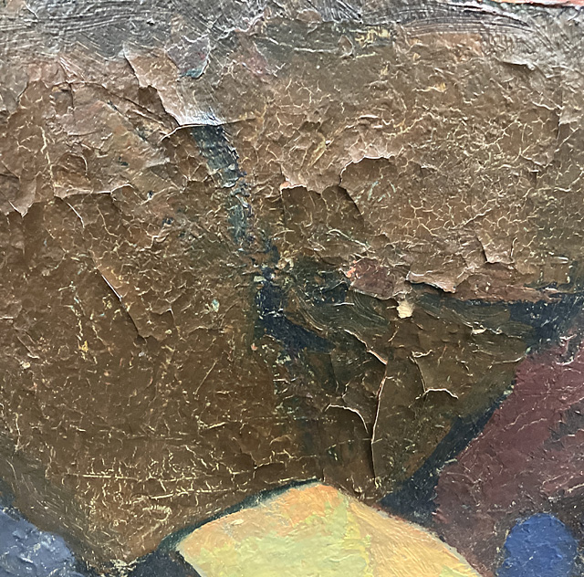 ■備考:(作品)画面数ヶ所にヒビ、剥落 ボード裏木枠に書き込み