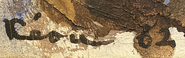 ■備考:(作品)キャンバス裏にもサイン、タイトル 画面全体にヒビ、絵具の浮き、剥落