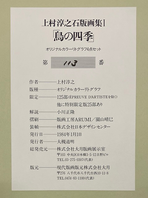【Lot0202】 鳥の四季(4枚1組版画集)