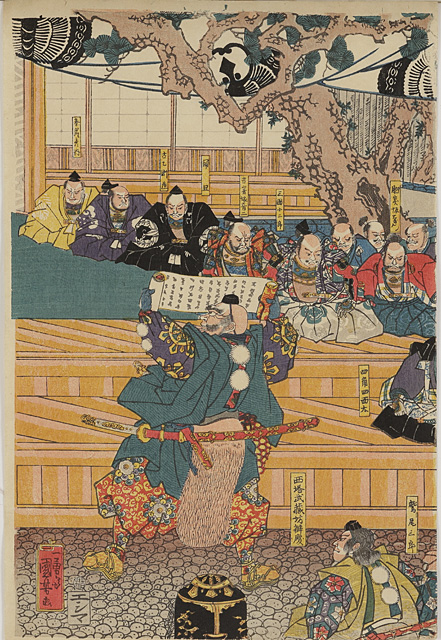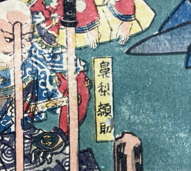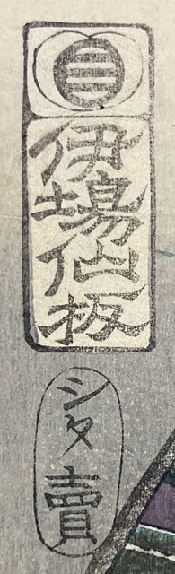 ■備考:(作品)版元:伊場仙板(伊場屋仙三郎) 名主印2ヶ所有 シート全体に経年によるヤケ、和紙による裏打ち 色乗せ有