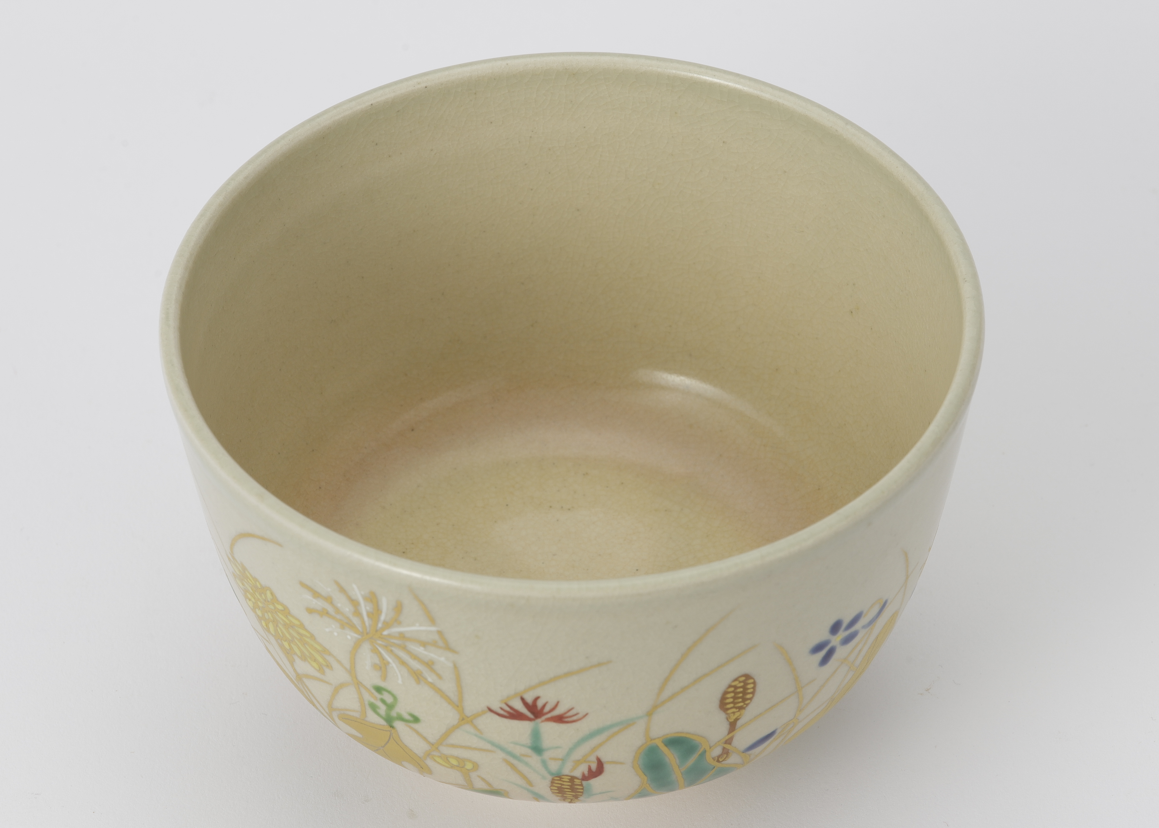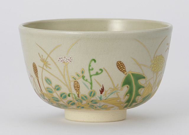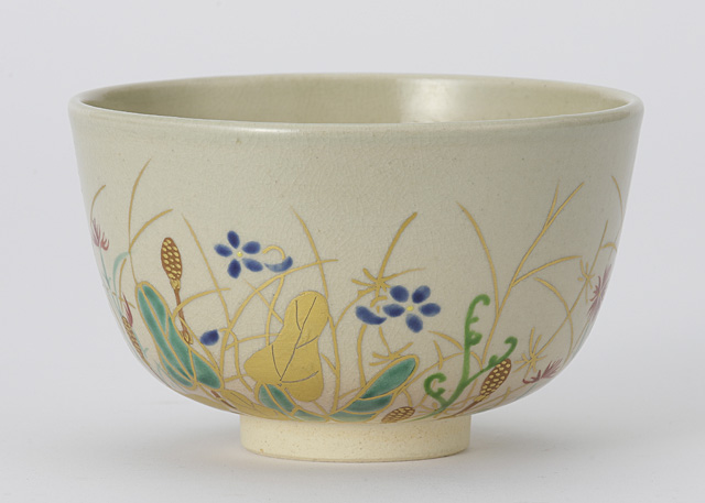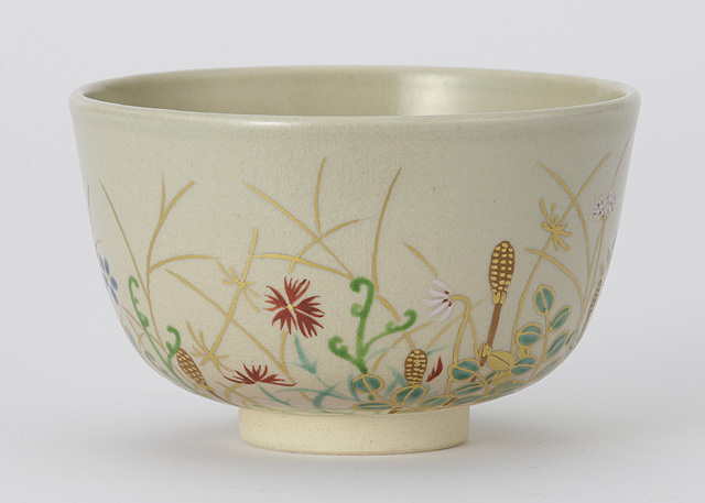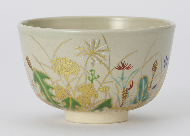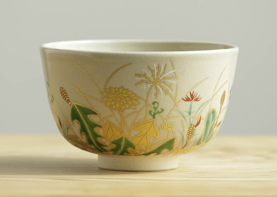 ■作品名:膳所ヤキ 色繪春の野茶碗