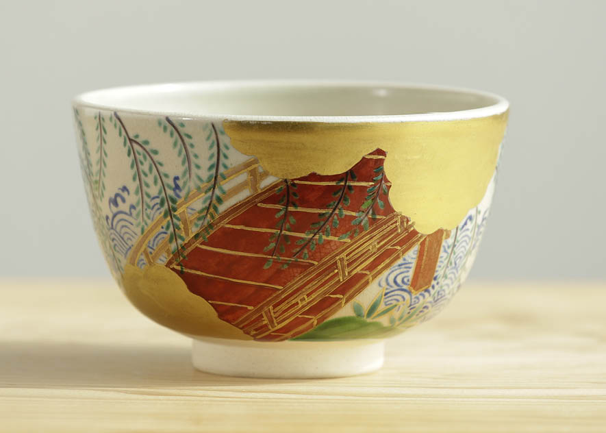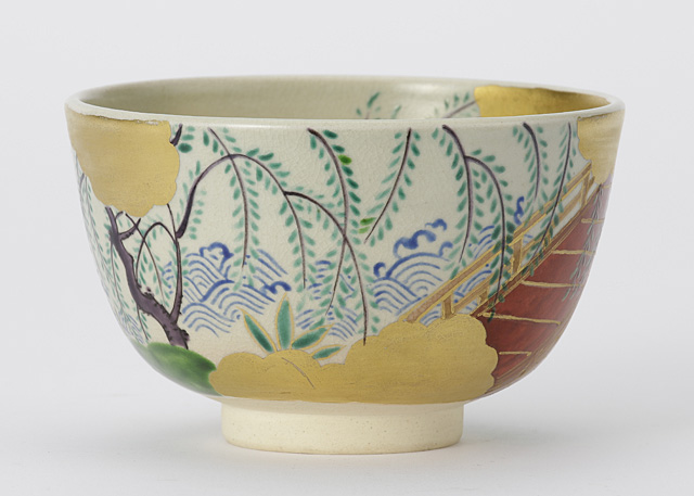 膳所ヤキ 柳橋ノ繪茶碗