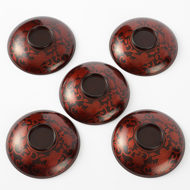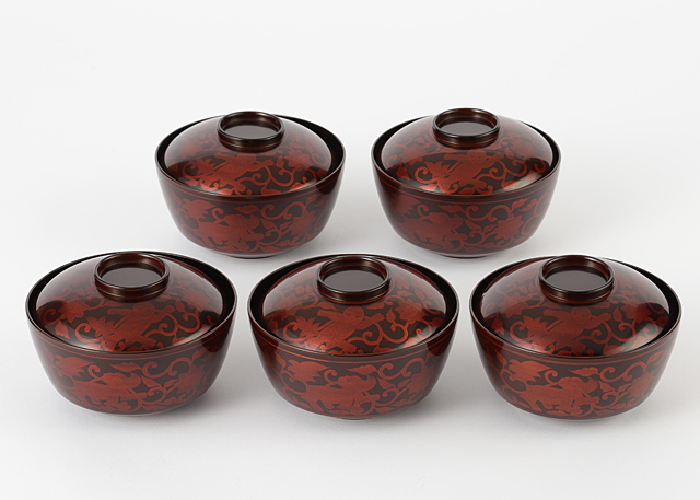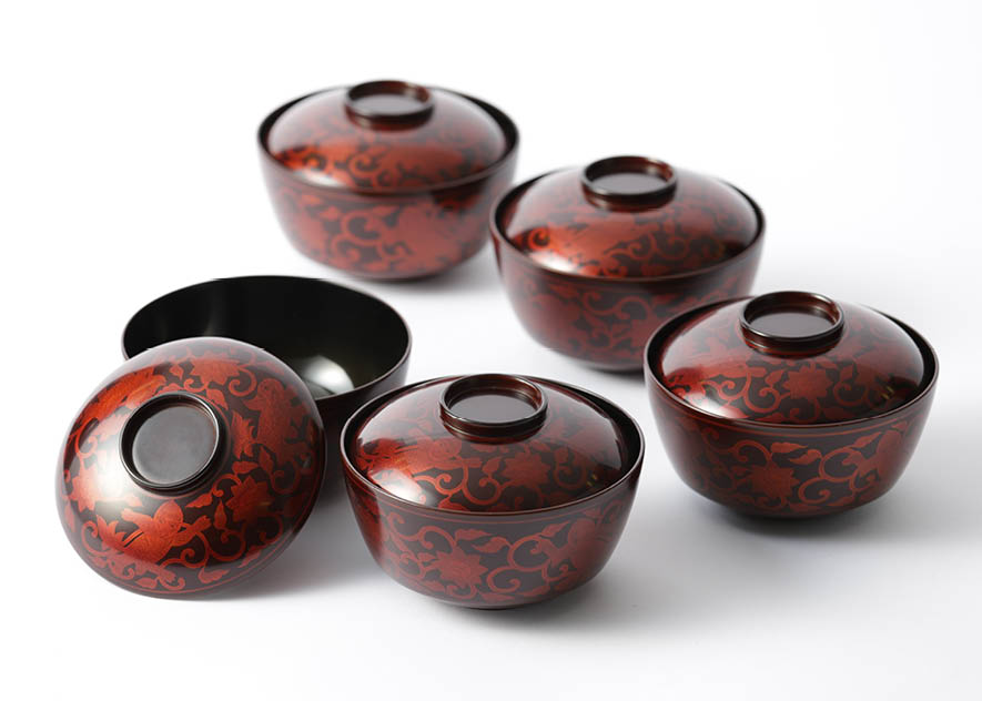 【Lot0003】 牡丹に唐獅子吸物碗 五客