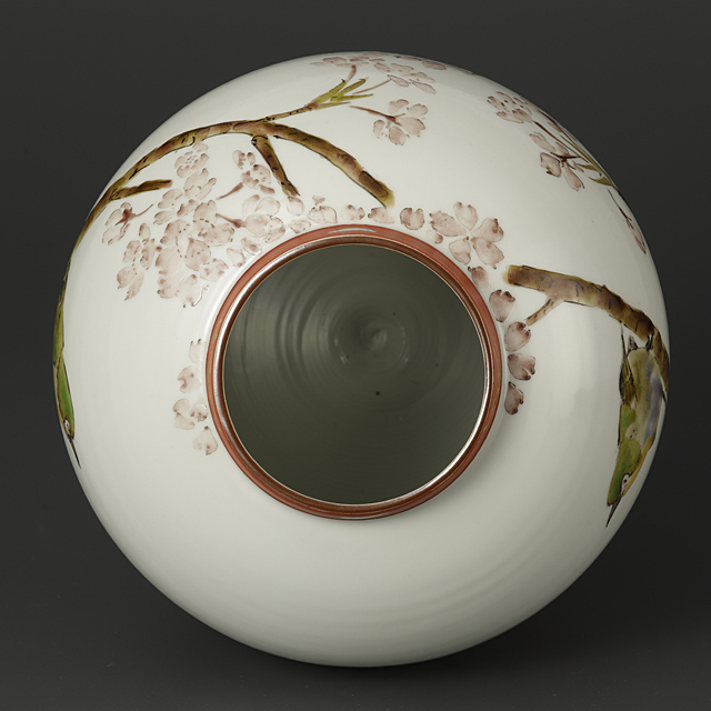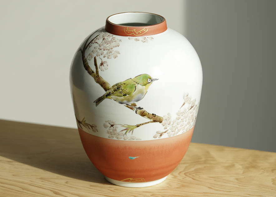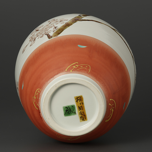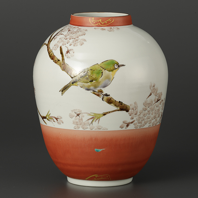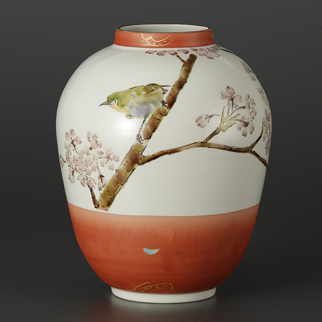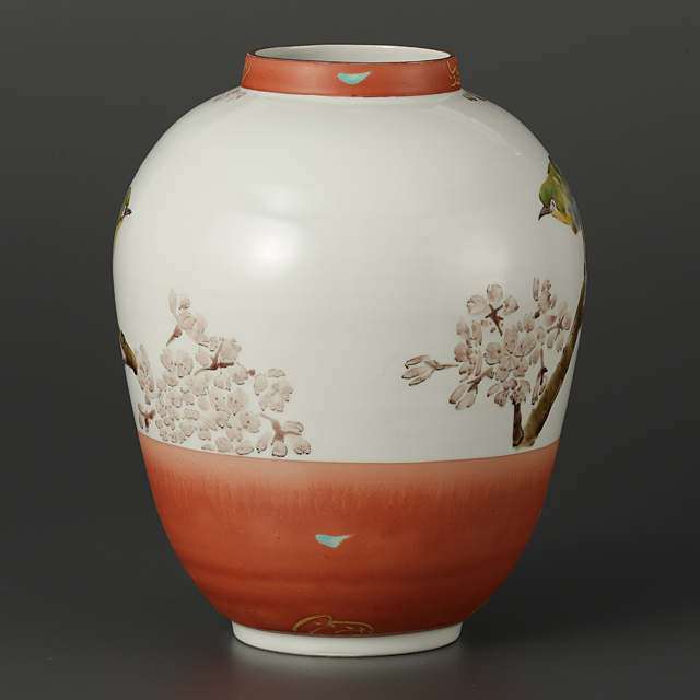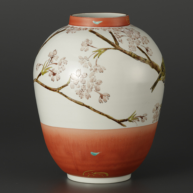 【Lot0050】 色絵金彩桜目白図壷