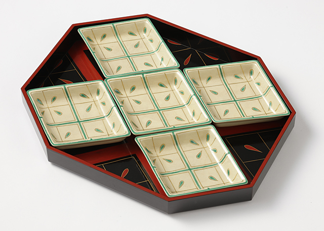 仁清冩業平菱皿 五