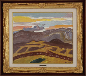■備考:(作品)キャンバス裏にタイトル 「日動画廊」シール 画面に薄いヤケ、四隅にピンホール キャンバス裏四辺にテープ貼付