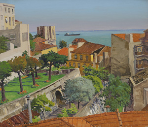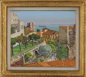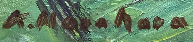 ■備考:(作品)キャンバス裏にもサイン、タイトル 画面に薄いヤケ、数ケ所にヒビ