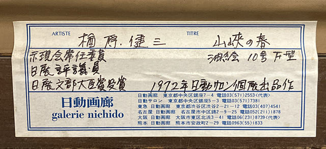 ■備考:(作品)「日動画廊」シール 画面に薄いヤケ
