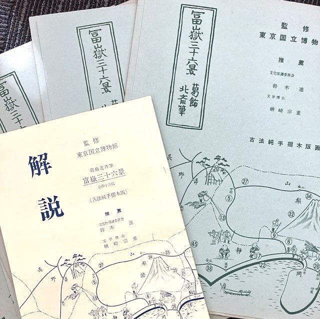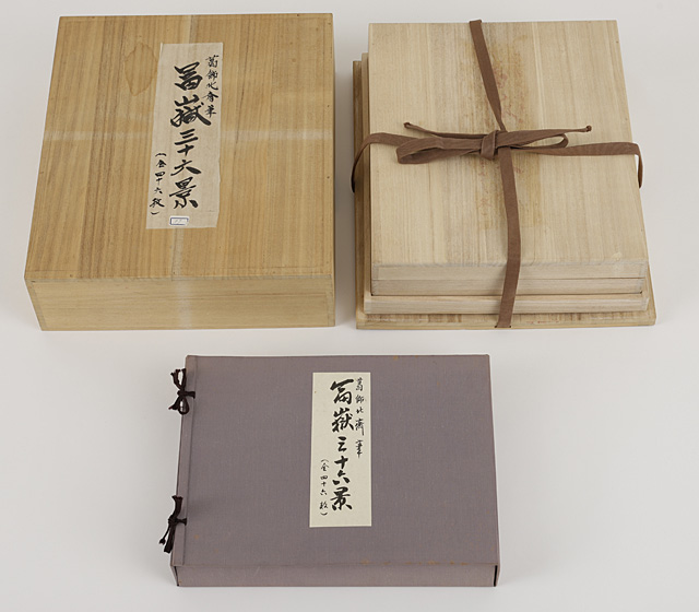 - 監修 東京国立博物館、版元 美術社による富嶽三十六景の復刻木版46点1組。