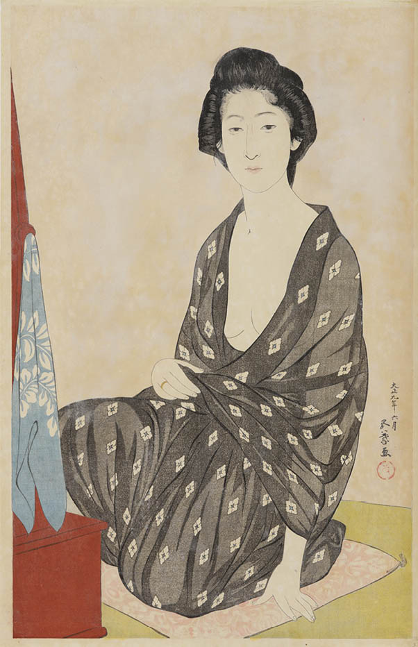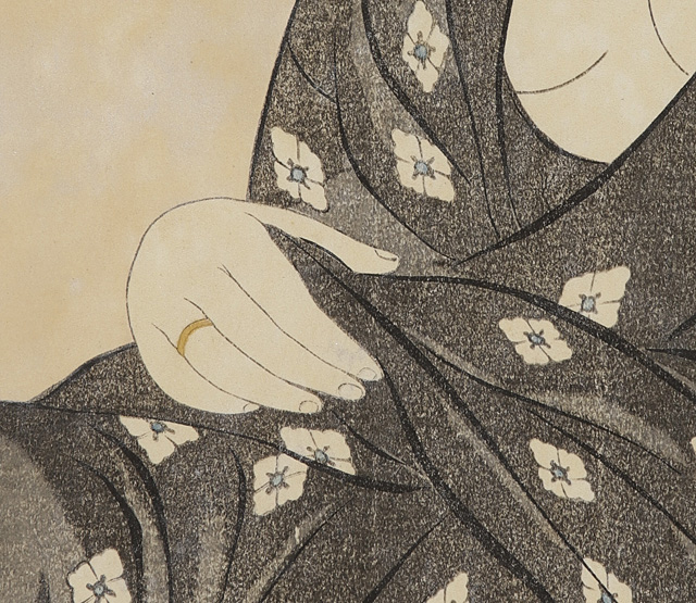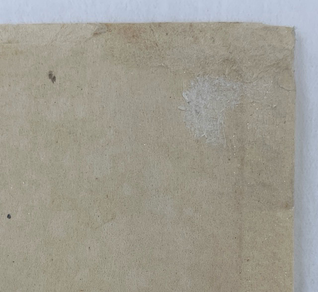 ■備考:(作品)白雲母刷り シート全体にヤケ、シミによるムラ 版面所々にシミ 上部縁沿いに2cm程度のヤブレの他、所々に小さなイタミ 裏面四隅を中心に裏打ち、補修
