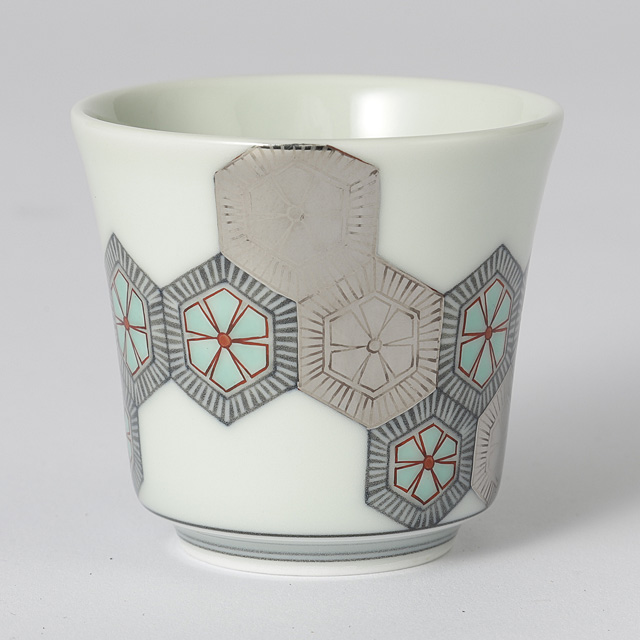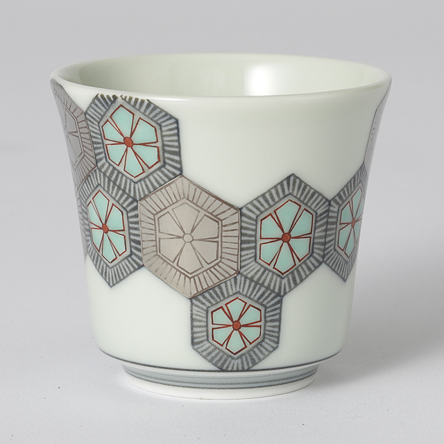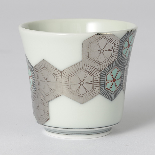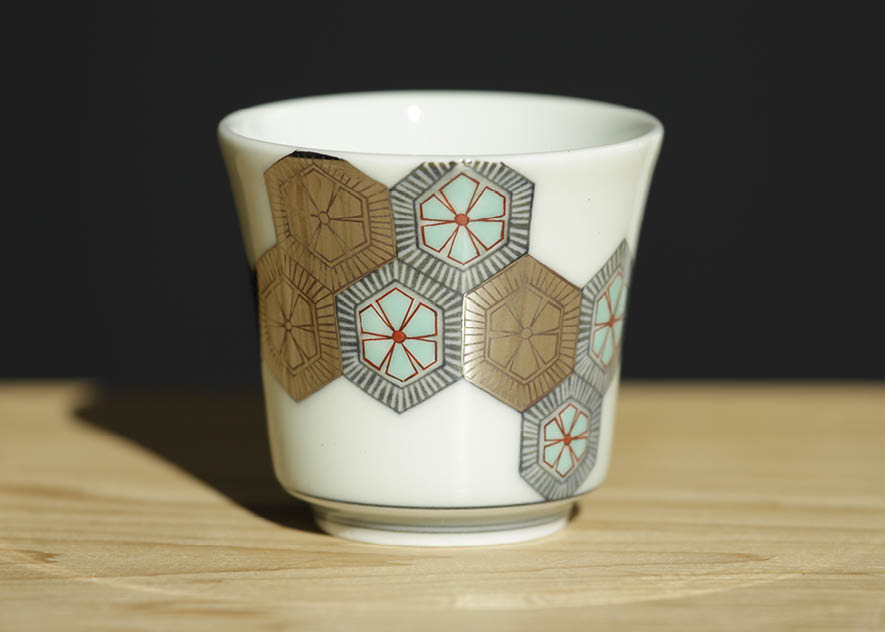 ■作品名:色絵墨色墨はじき亀甲文ぐい呑